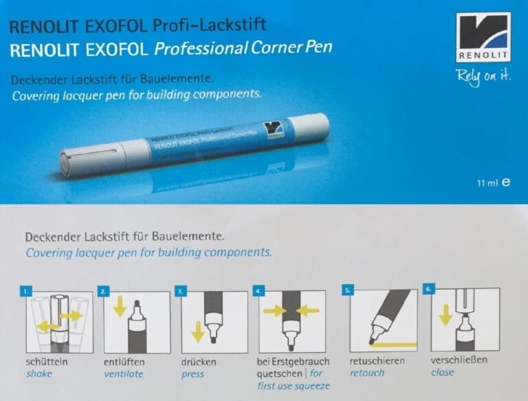 Wilt u zelf kleine schades herstellen of bijwerken? Dan kunt u hiervoor speciale stiften bestellen. Deze zijn bedoeld voor het bijwerken van kleine oppervlakkige schades aan de folie van uw kunststof kozijnen. Ook zijn deze stiften uitermate geschikt voor het inkleuren van hoeken, naden en zaagkanten.